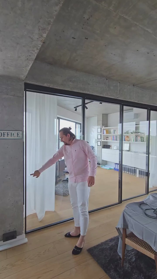 - Design: Perete de părțitor care poate fi personalizat cu opțiuni de sticlă clară, sablată, mată sau colorată, în funcție de preferințe.